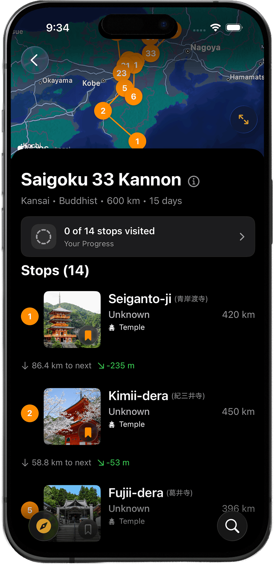 基于隐私优先原则和原生 iOS 性能构建,Goshuin Atlas 让您保存的寺庙和之前查看的地点可离线访问,确保您的文化之旅保持个人化,即使在无互联网连接的偏远地区也可用。